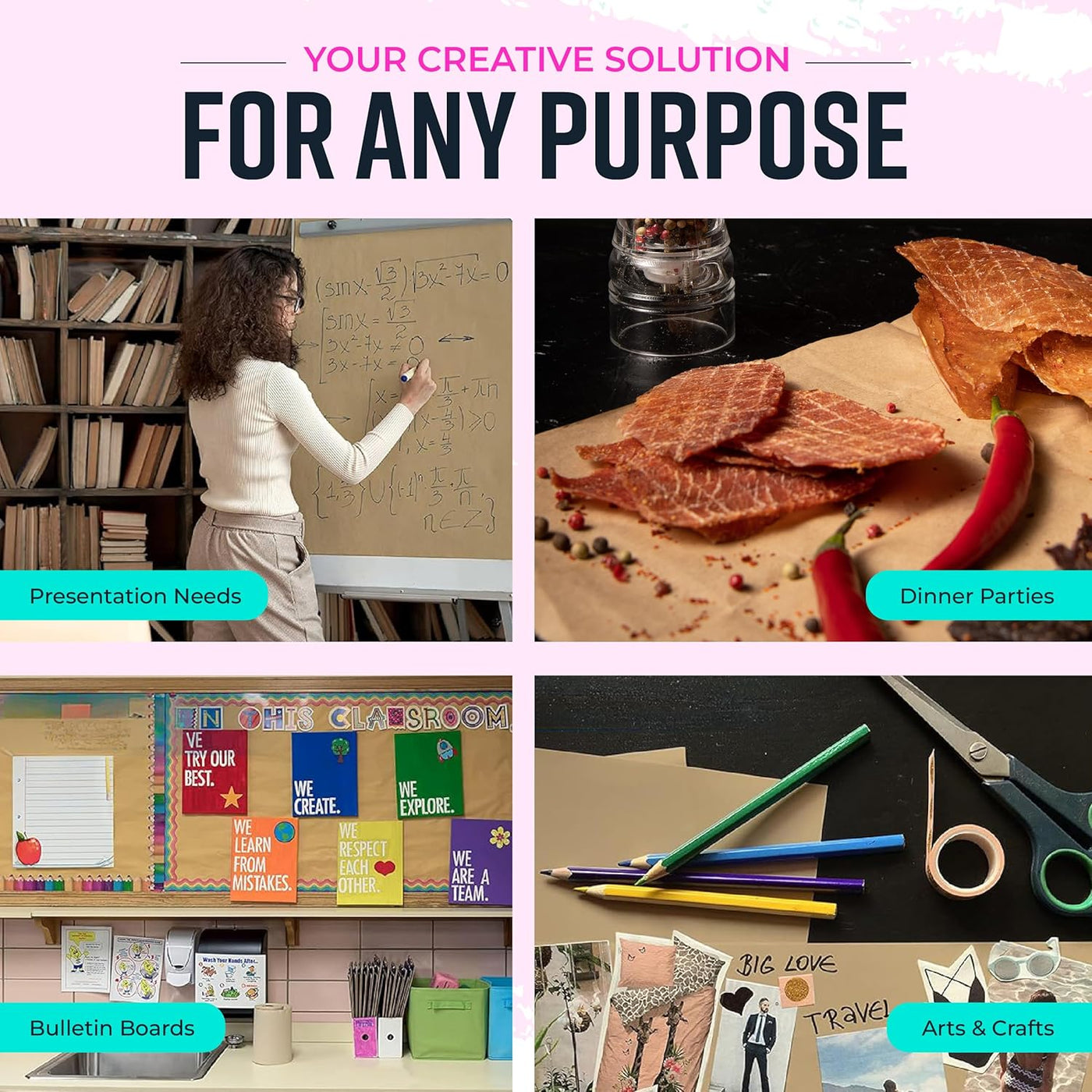Its versatility makes it useful for a wide range of DIY projects—bulletin boards, wall art, table runners, floor protection, school crafts, or anything that calls for a clean brown paper surface. The material is safe, reliable, and simple to work with, making it suitable for home use, classrooms, and small businesses.