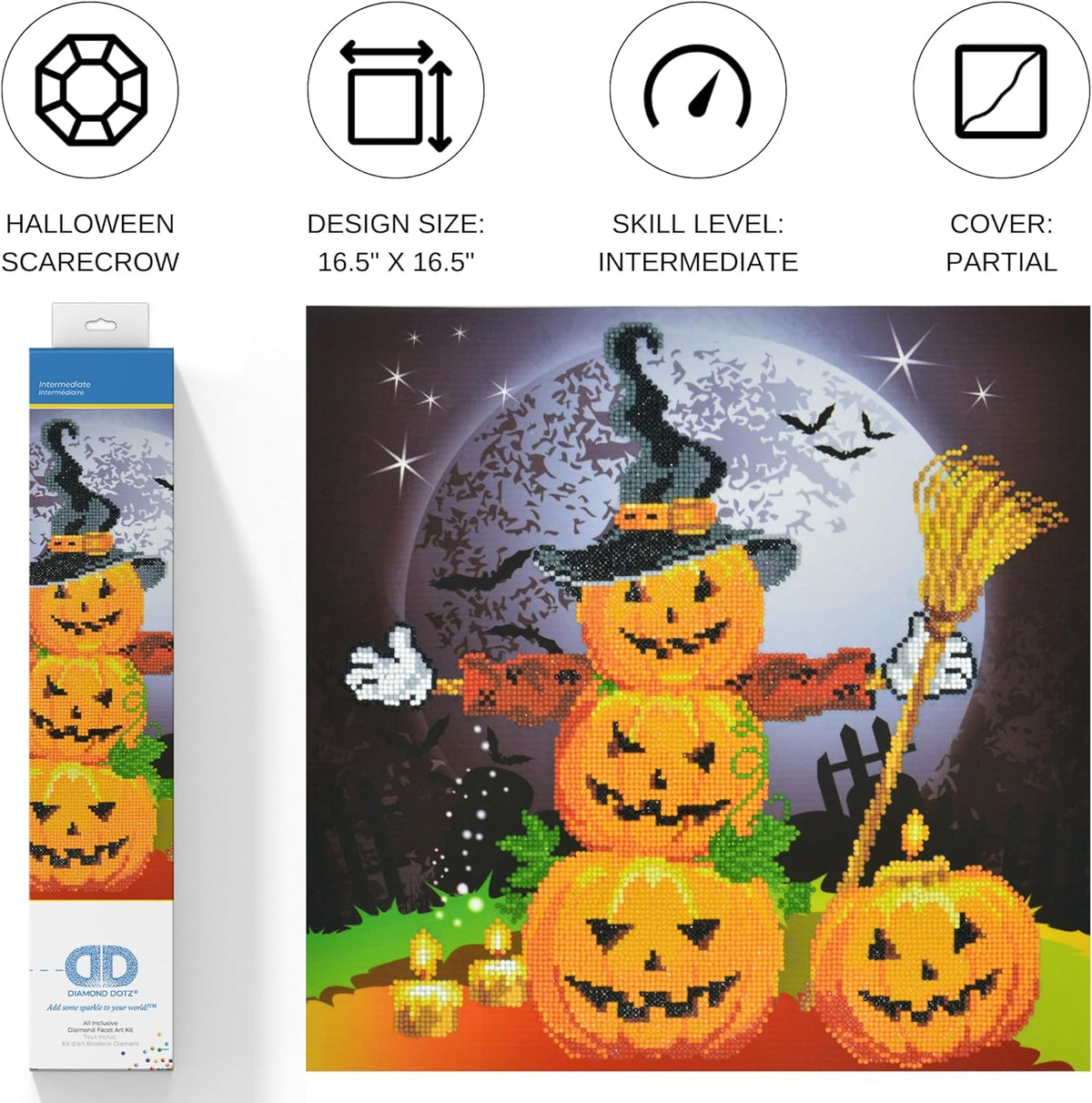 The DIAMOND DOTZ Halloween Scarecrow Kit is a great option for adults who want a calming, hands-on craft that transforms into a beautiful decorative piece. The pre-printed fabric provides clear placement guides, and the premium DOTZ gems reflect light for a bright, sparkling finish. As you place each gem, the design comes to life with vivid colors and eye-catching detail, making the process both soothing and rewarding.