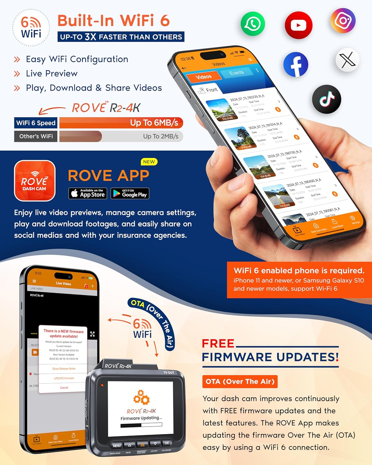 • 5G WiFi with 20MB/s Transfers – Quickly view or download footage via the ROVE app.