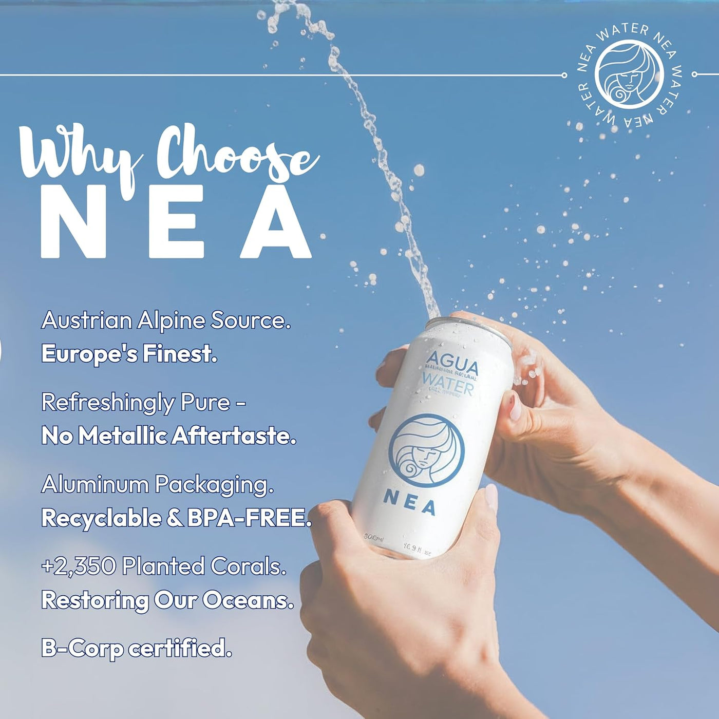 NEA Canned Water brings pure Austrian Alps spring mineral water in BPA-free aluminum cans for clean hydration without plastic waste. With crisp mountain taste, 100% recyclable packaging, and real ocean-restoration impact, it’s the sustainable hydration upgrade for home, travel, gym, and everyday use.