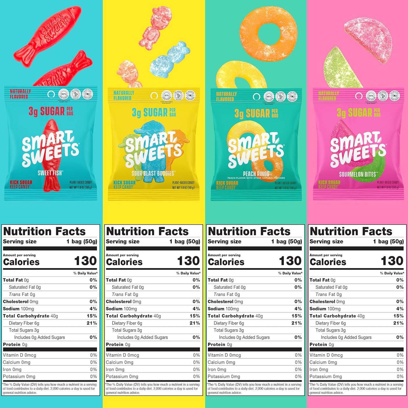 SmartSweets gummies are allergen-friendly and made without major allergens such as peanuts, tree nuts, wheat, soy, milk, eggs, fish, or shellfish. They’re also gluten-free and plant-based, making them a safe and delicious choice for school snacks, lunchboxes, movie nights, travel, or guilt-free sweet cravings anytime. With 6g of fiber in every bag, these gummies are the perfect balance of fun flavor and better-for-you ingredients.