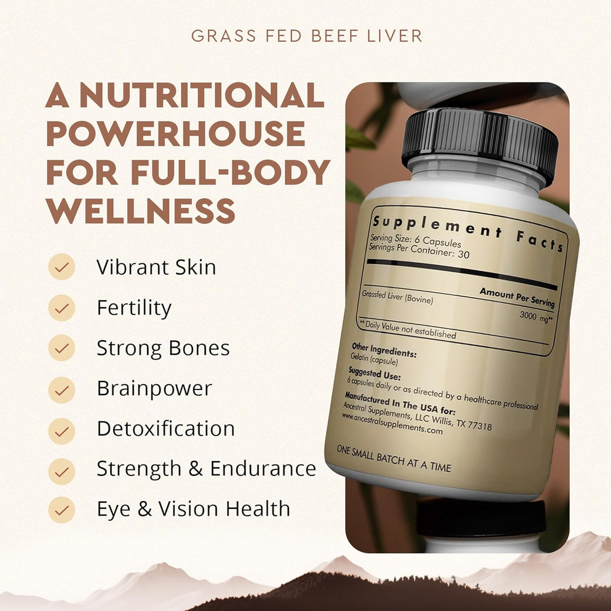 Beef liver is one of nature’s most nutrient-dense foods, supplying bioavailable vitamin A, vitamin B12, folate, choline, CoQ10, heme iron, zinc, copper, and chromium—nutrients essential for energy production, immune resilience, metabolic balance, and overall wellness. Because the supplement is made from whole liver rather than isolated extracts, it delivers nutrients in their natural ratios, supporting better absorption and utilization by the body.