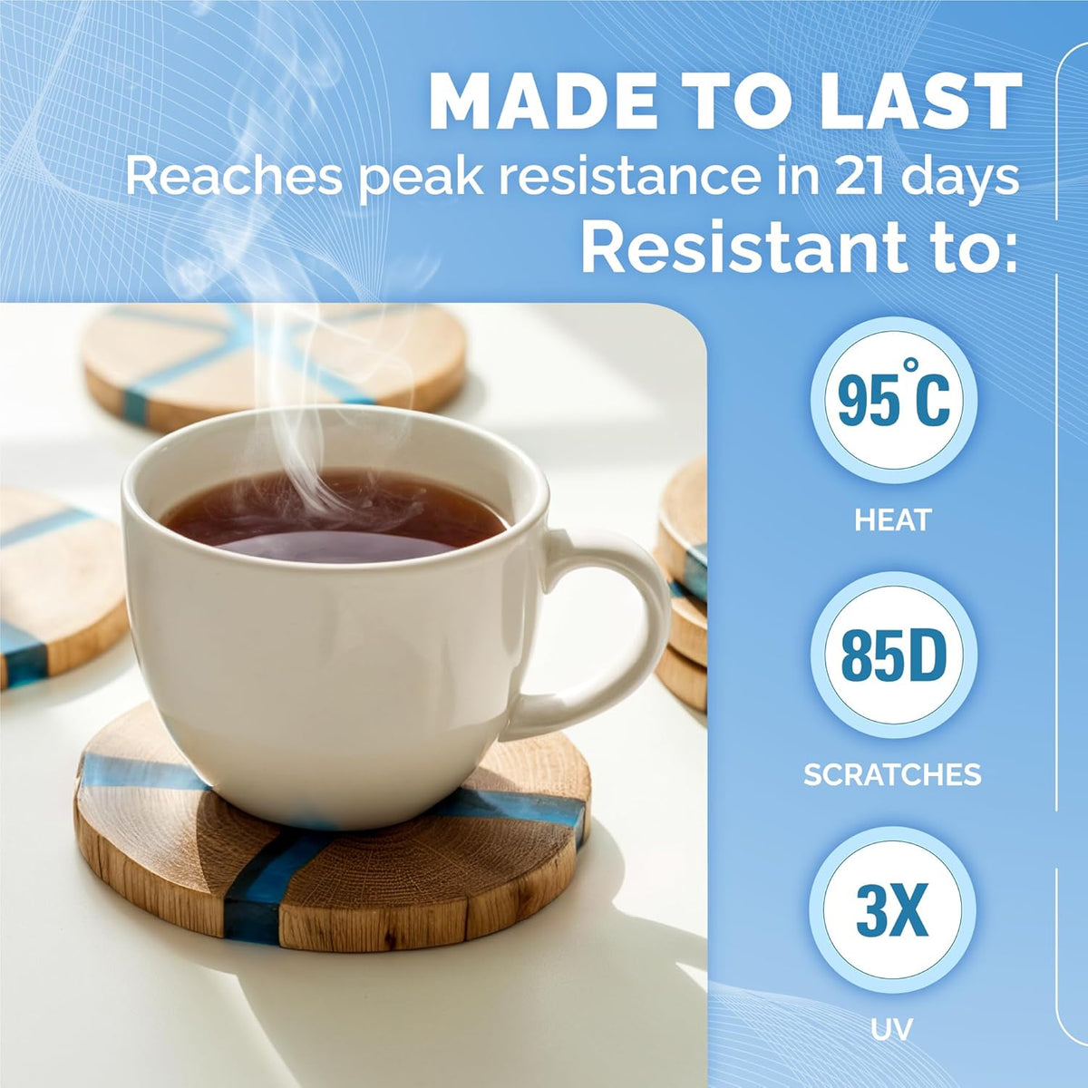 Fast 24-Hour Cure Time – Hardens quickly into a heat- and scratch-resistant surface for lasting durability.