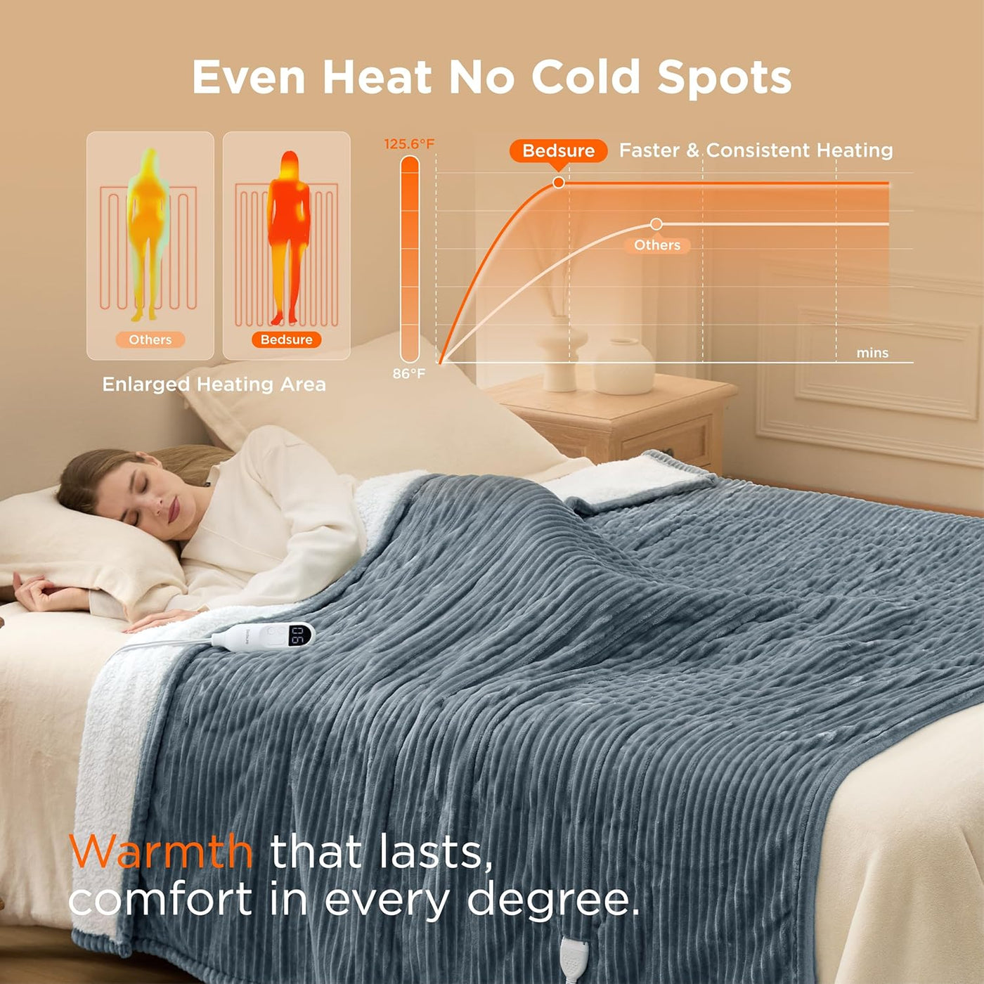 Fast & Even Heating – Precision heating wire technology ensures consistent temperature control and safer warmth