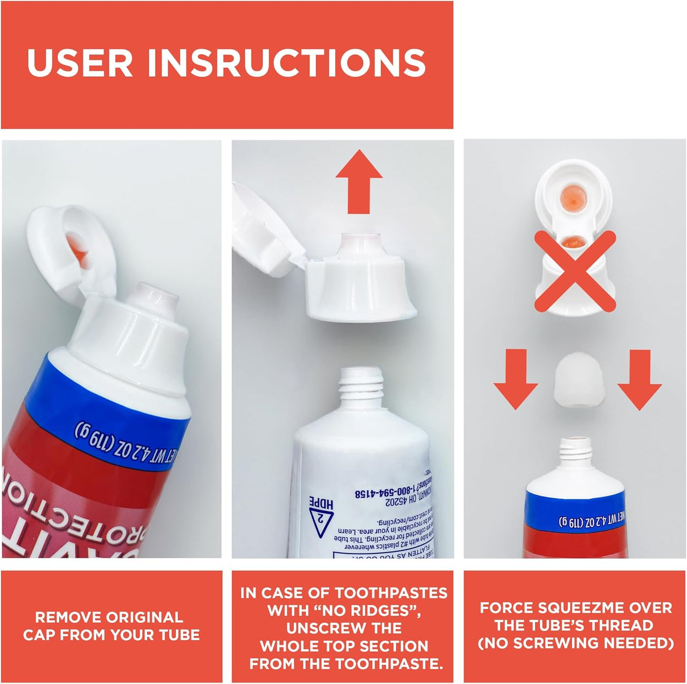 Installation is quick and effortless—simply remove the original cap and press the SqueezMe cap onto the tube. No twisting, no tools, and no frustration. These caps are compatible with most standard toothpaste tubes, making them a versatile upgrade for home bathrooms, kids’ sinks, travel kits, dorms, and shared spaces.