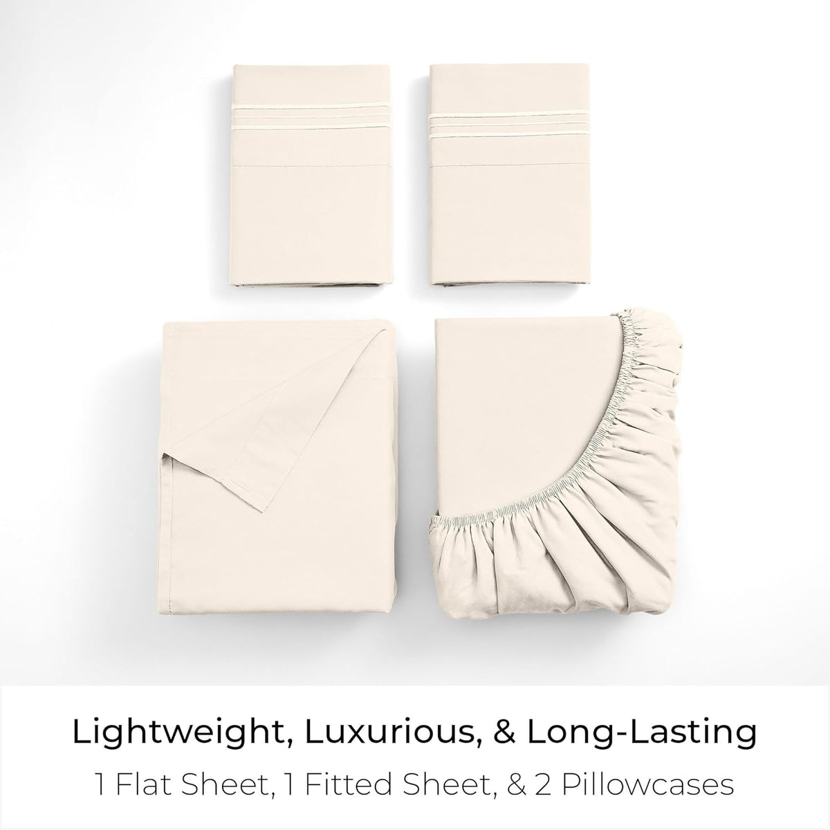 Complete 4-Piece King Set – Includes 1 fitted sheet (78" x 80" x 16"), 1 flat sheet (102" x 105"), and 2 pillowcases (20" x 40")