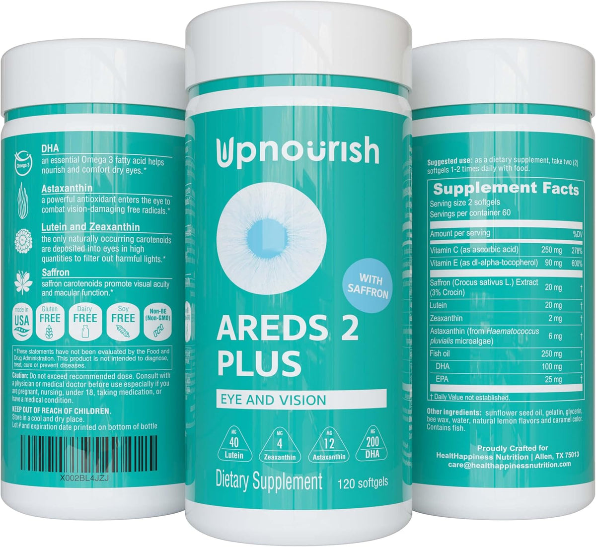 To ensure daily tolerability, the softgels include soothing lemon oil and are made without common allergens or unnecessary additives. Manufactured in GMP-certified facilities and third-party tested for purity, strength, and heavy metals, UpNourish AREDS 2 Plus reflects a quality-first approach trusted by customers worldwide.