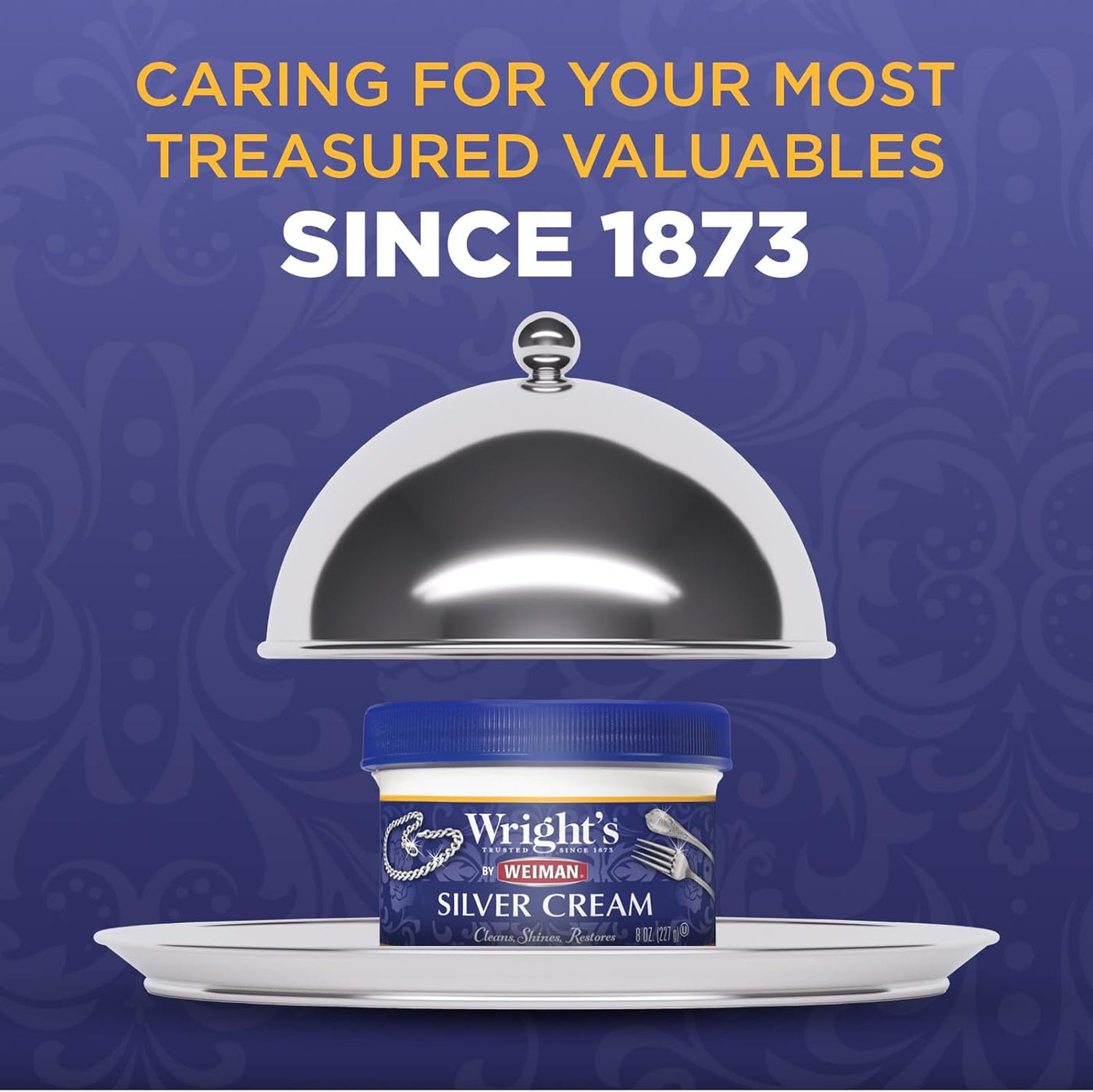 Wright’s by Weiman Silver Cleaner and Polish Cream is formulated to restore the appearance of tarnished silver and other delicate metals while maintaining surface safety. The cream-based formula works by loosening and lifting tarnish from metal surfaces, helping return dull items to a brighter, polished finish without abrasive damage. Its non-scratch formulation makes it suitable for routine maintenance of decorative and functional metal items.