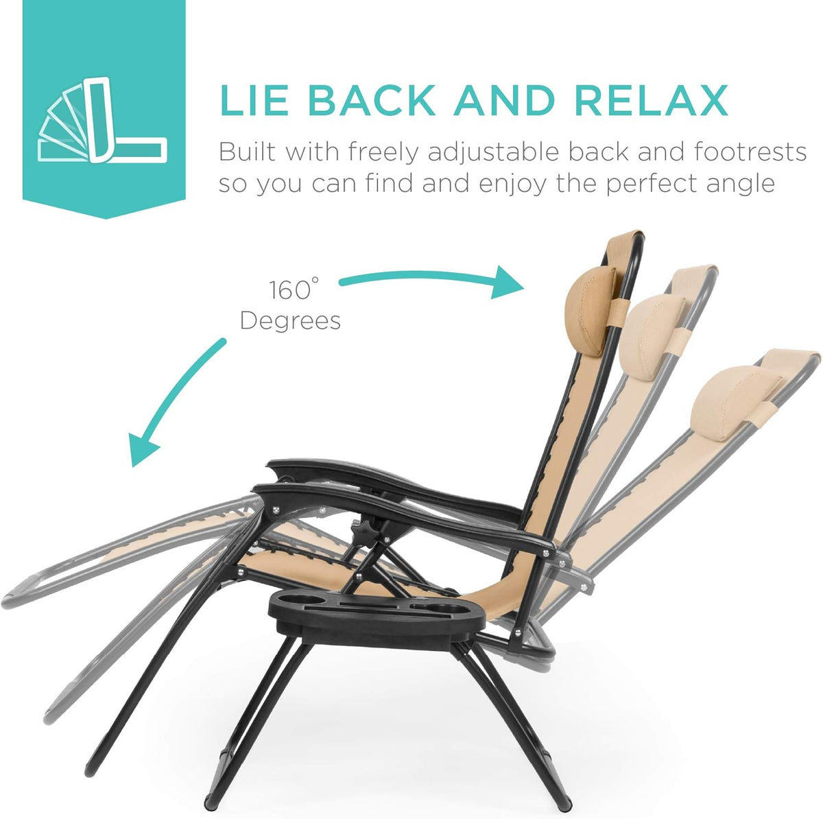 Built for convenience on the go, these chairs fold flat for easy transport and storage, making them ideal for the beach, park, camping trips, or outdoor events. The detachable tray keeps essentials close with built-in holders for drinks, phones, and tablets, while the adjustable padded headrest provides added neck and head support. With a sturdy steel frame and a 250-pound weight capacity, this lounge chair set combines comfort, function, and reliability wherever you relax.