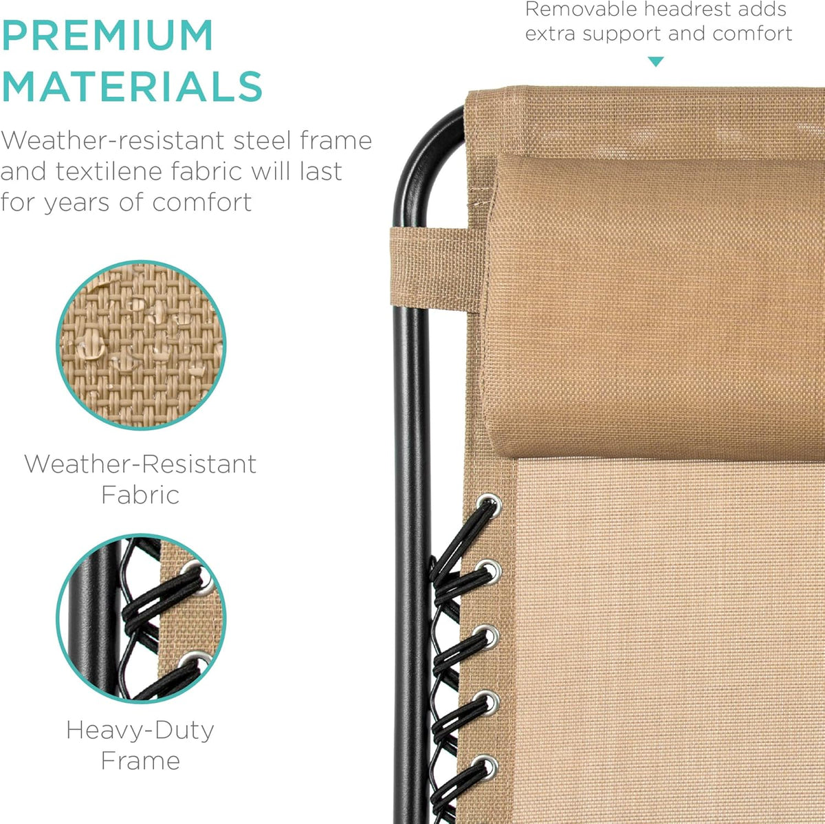 • Durable Steel & Textilene Fabric – Flexible, low-wear mesh fabric paired with a strong steel frame supports up to 250 lbs per chair