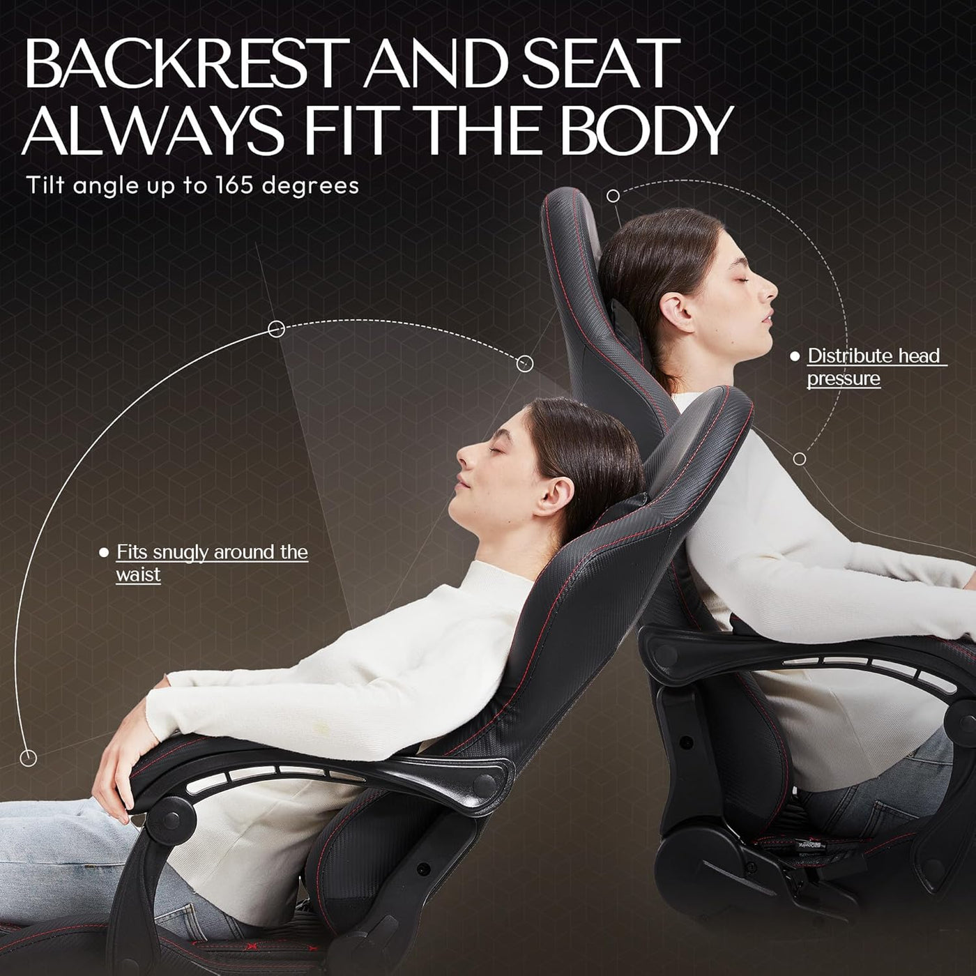 For relaxation, the chair offers a 90°–165° reclining range, a gentle 20° rocking function, and a retractable footrest—allowing you to switch effortlessly from focused posture to full-body relaxation. The scratch-resistant, perforated PU leather upholstery with diamond stitching enhances breathability while adding a sleek racing-style aesthetic to any gaming or office setup.