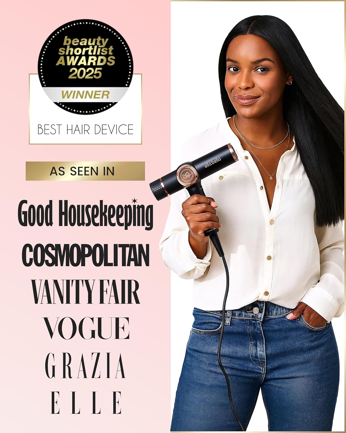 To help you create a variety of styles, the dryer includes three magnetic styling nozzles that attach securely and allow effortless switching between sleek straight looks, controlled volume, or defined curls. Stylish, powerful, and easy to use, the ELLA BELLA® Professional Ionic Hair Dryer delivers salon-worthy results with comfort, speed, and precision.