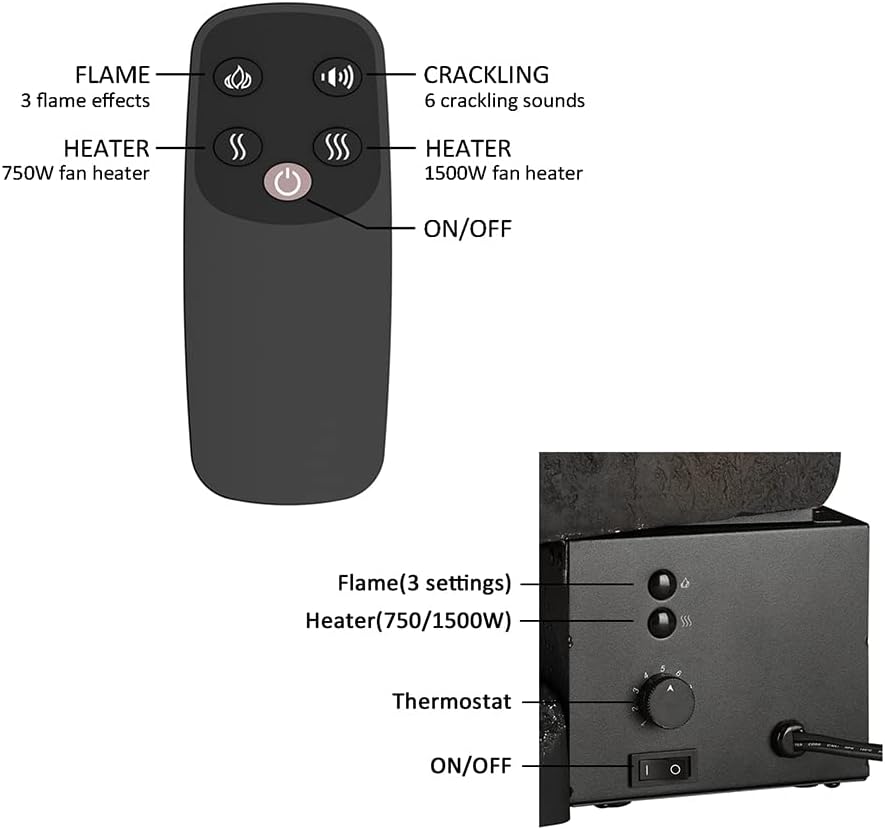 This electric fireplace insert fits easily into both small and large openings and requires no complex installation—simply place it into position and plug it in. Energy-efficient LED technology allows you to enjoy the flame effect year-round, with or without heat, while keeping electricity costs low. The built-in heater offers two heat settings (750W / 1500W) to comfortably warm rooms up to 400 square feet, making it ideal for supplemental warmth during colder months.